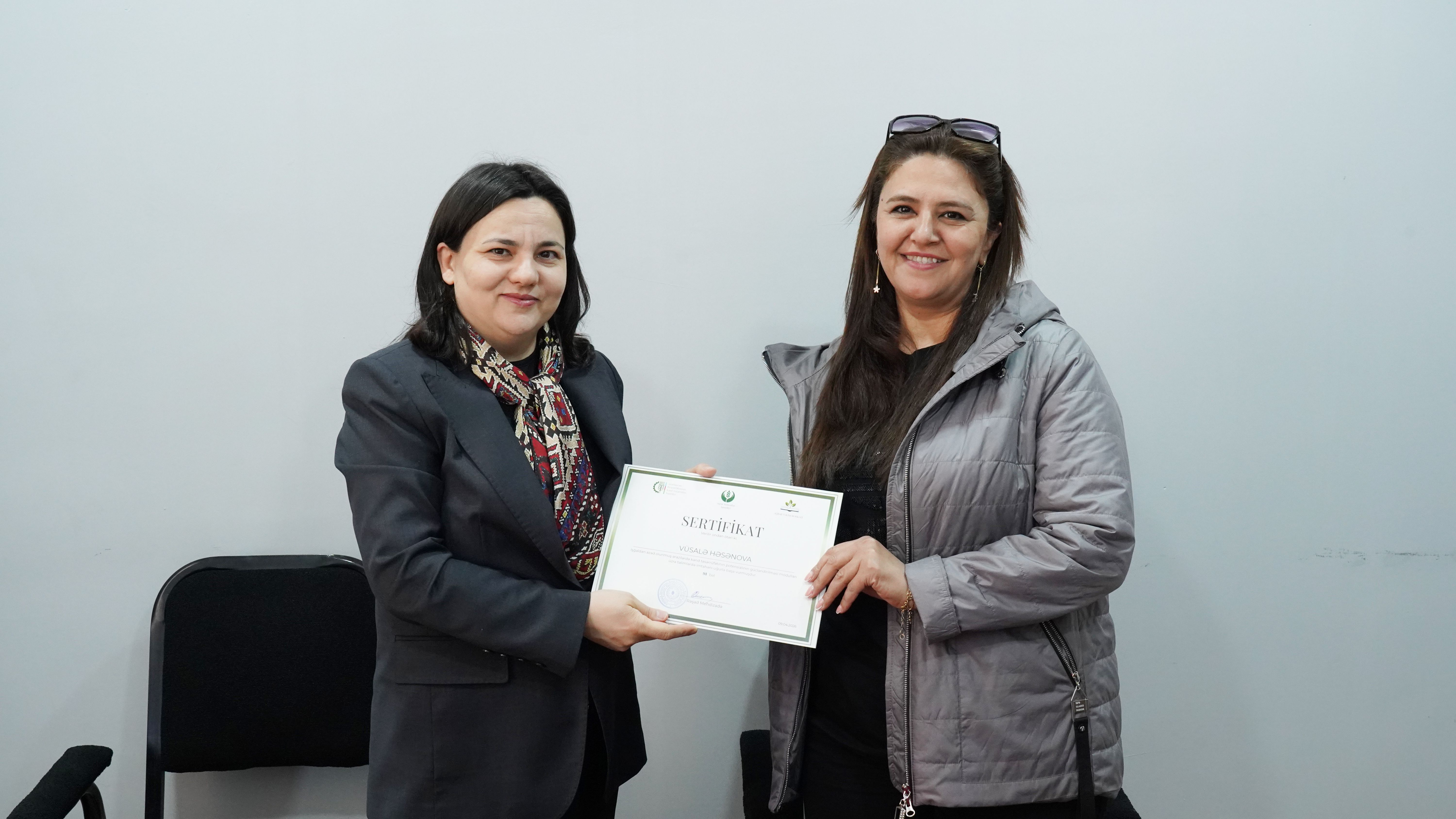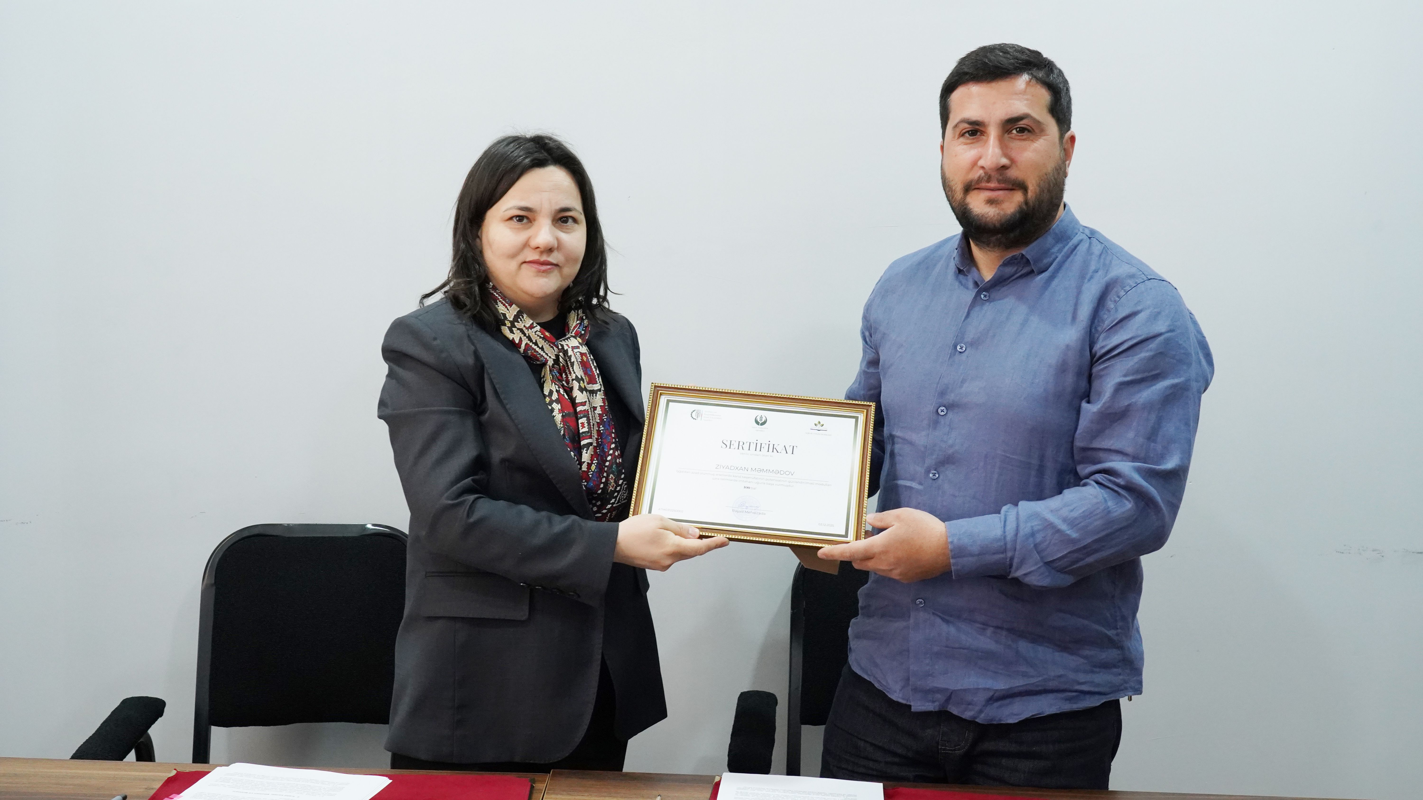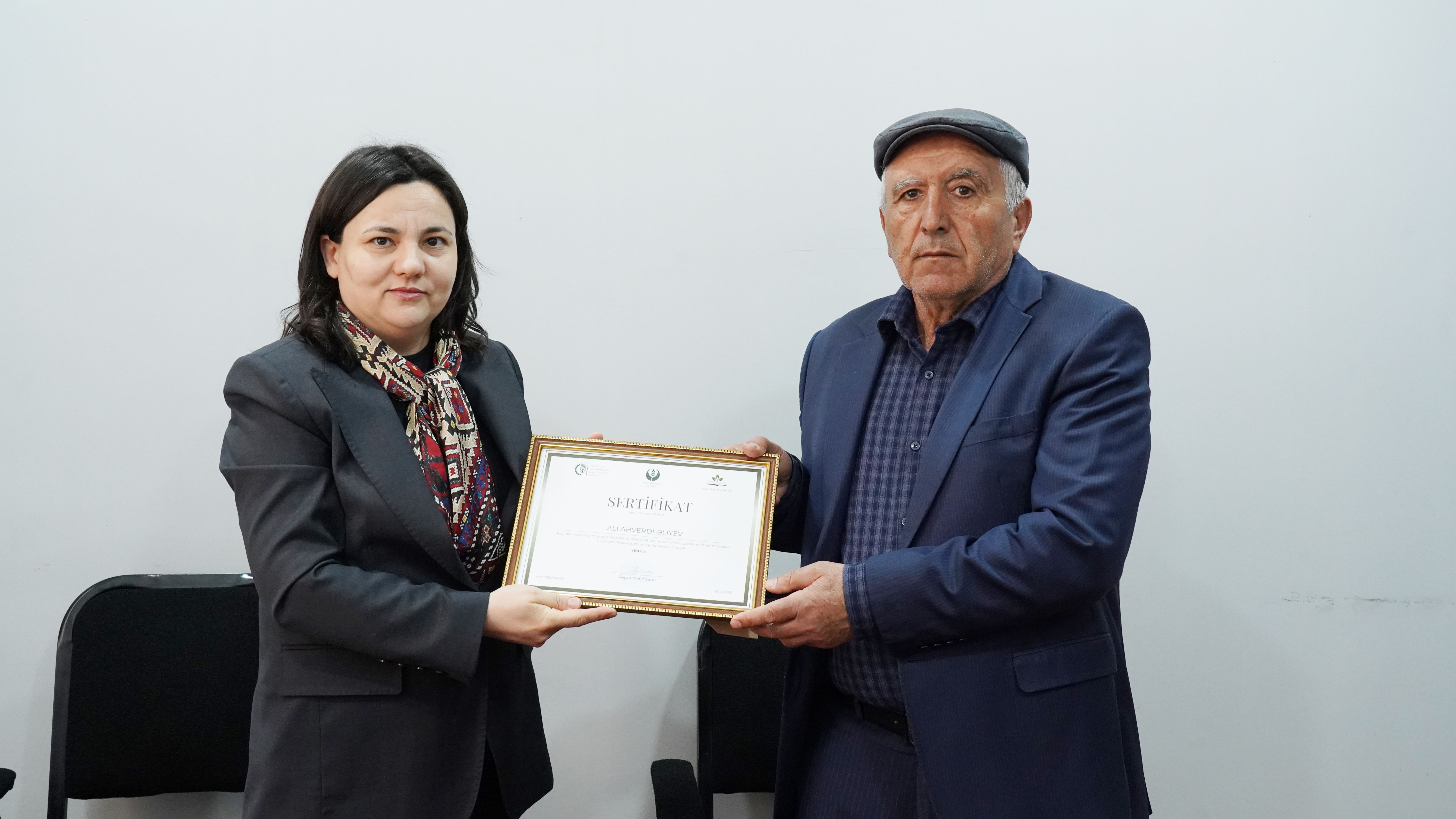 Təlimləri uğurla başa vuran kənd sakinlərinə sertifikatlar təqdim olunub. Müqavilə imzalayan bütün fermerlər qeyd edilən təlimləri uğurla başa vurub.