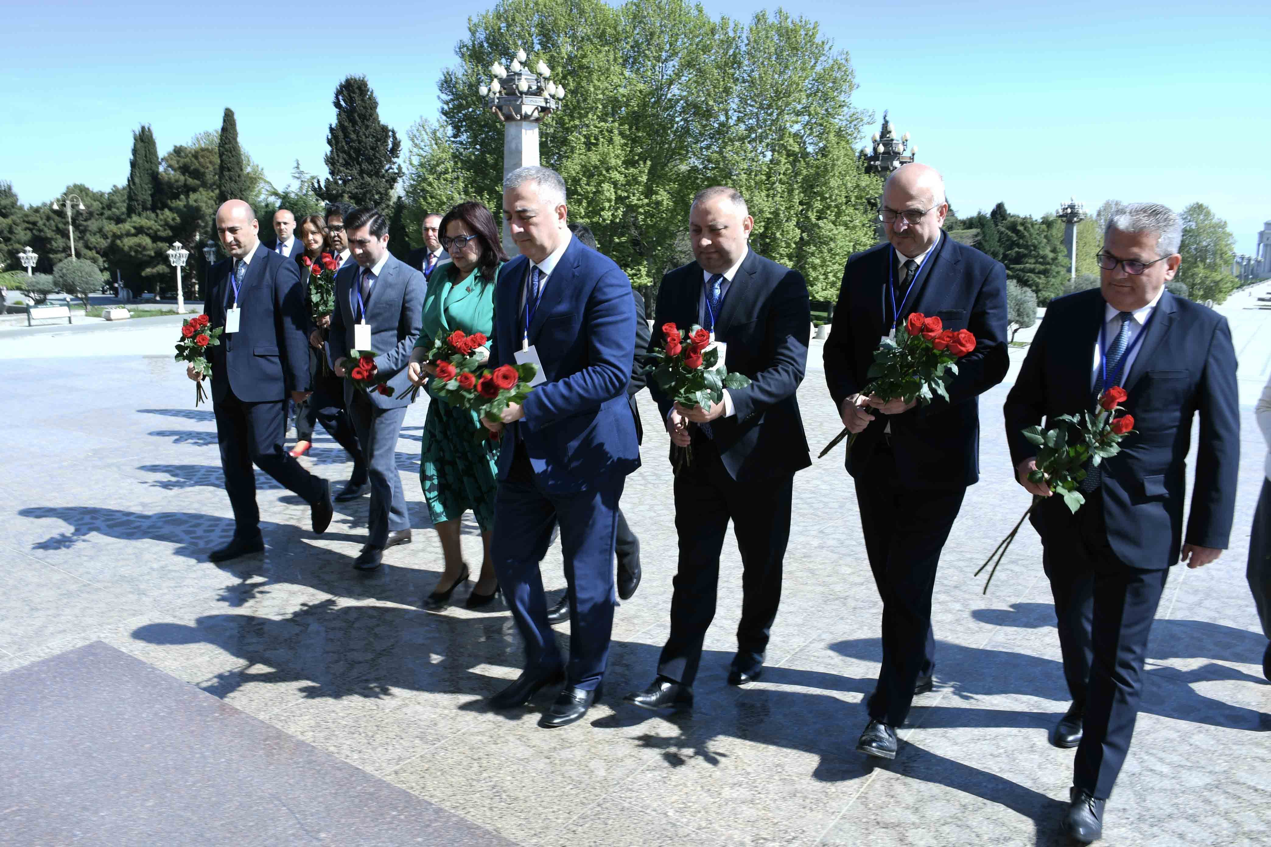 Tədbir iştirakçıları əvvəlcə Ulu Öndər Heydər Əliyevin abidəsini ziyarət edib, önünə tər gül dəstələri qoyaraq əziz xatirəsini dərin ehtiramla yad ediblər.