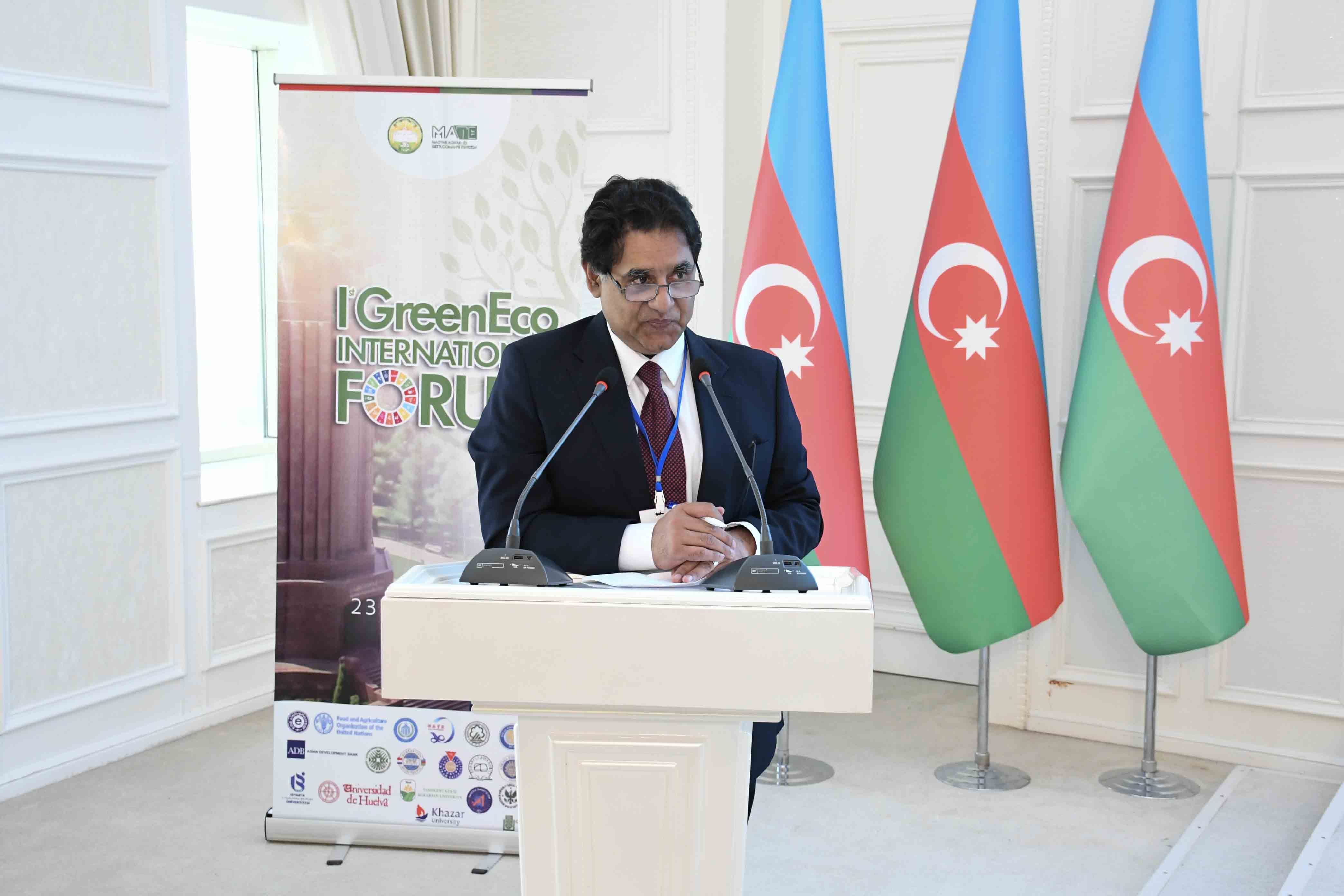 FAO Azərbaycandakı nümayəndəliyinin rəhbəri Muhamməd Nasar Hayat çıxışında Azərbaycanda aqrar sahədə həyata keçirilən yaşıl yanaşmaların və innovativ təşəbbüslərin beynəlxalq miqyasda nümunəvi təcrübə kimi qiymətləndirildiyini vurğulayıb.