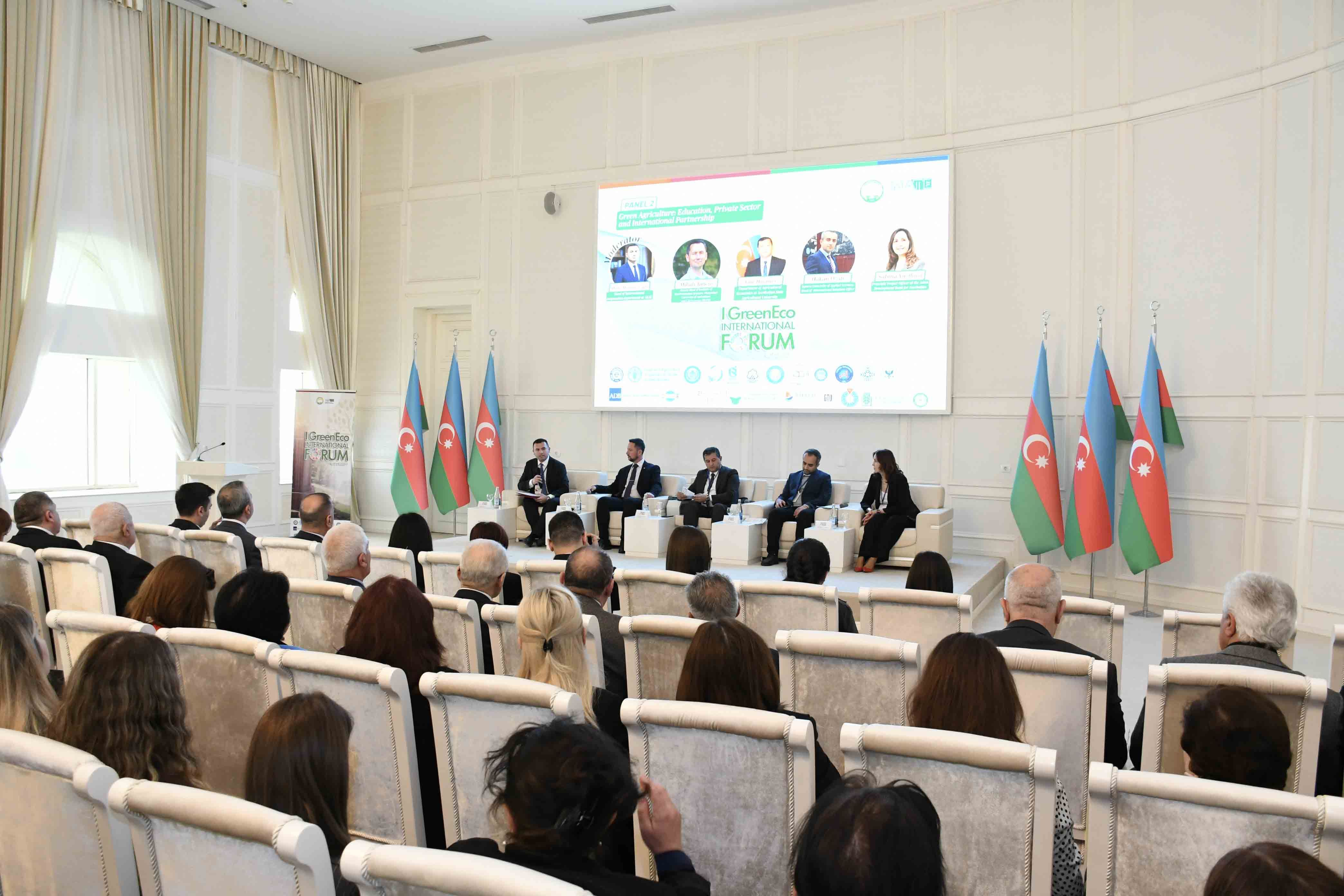 Daha sonra “Elm və təhsildə yaşıl konsepsiyalar”, “Yaşıl kənd təsərrüfatı: təhsil, sənaye və beynəlxalq tərəfdaşlıq” mövzularında panel müzakirələr keçirilib, həmçinin iştirakçılar arasında beynəlxalq əməkdaşlıq imkanlarının genişləndirilməsi istiqamətində müzakirələr və ikitərəfli görüşlər keçirilib.