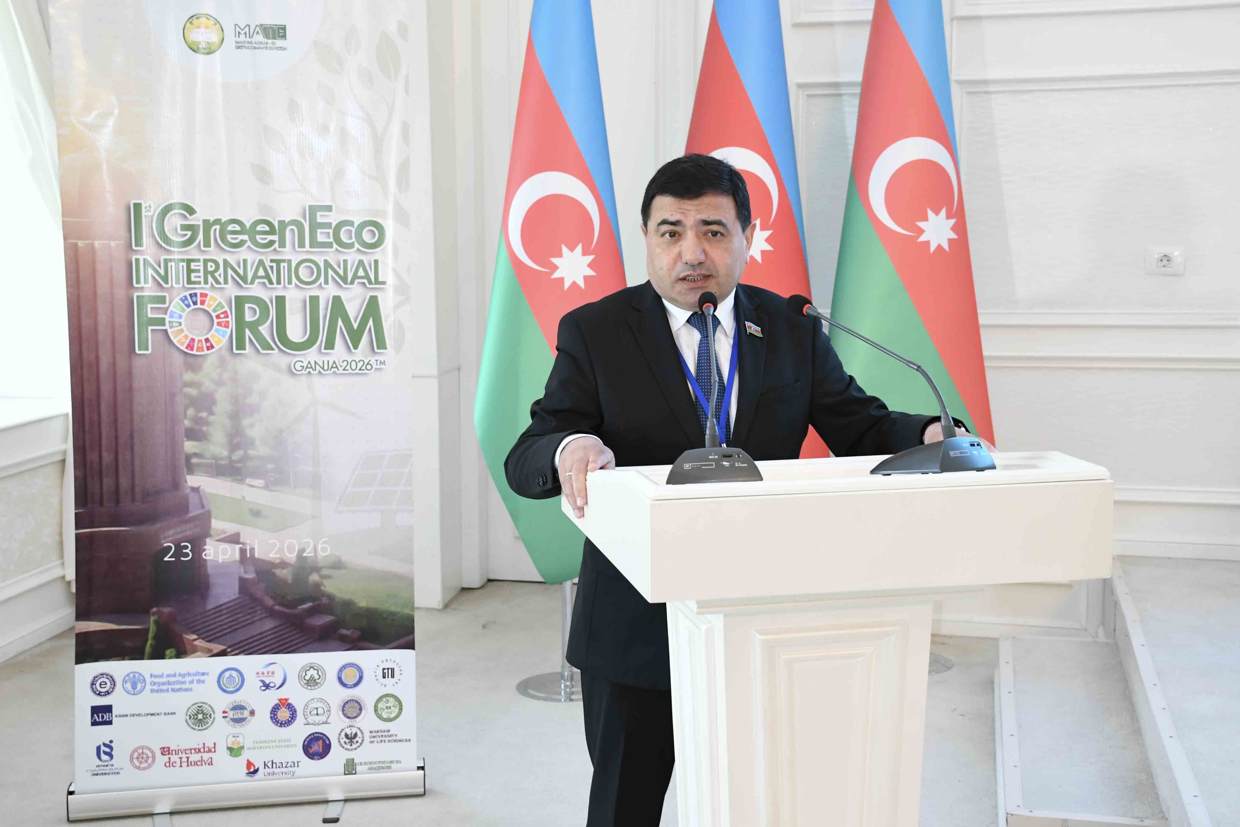 Gəncə şəhər Heydər Əliyev Mərkəzində keçirilən beynəlxalq forumda çıxış edən ADAU-nun rektoru Zəfər Qurbanov bildirib ki, hazırda dünyada ətraf mühitin çirklənməsi, təbii ehtiyatların tükənməsi və qida təhlükəsizliyi ilə bağlı artan çağırışlar fonunda “yaşıl iqtisadiyyat” modelinə keçid strateji zərurətə çevrilib. Bu istiqamətdə ölkəmizdə həyata keçirilən siyasət, xüsusilə “Azərbaycan 2030: sosial-iqtisadi inkişafa dair Milli Prioritetlər” çərçivəsində müəyyən edilən “Təmiz ətraf mühit və yaşıl artım ölkəsi” hədəfi mühüm əhəmiyyət daşıyır.