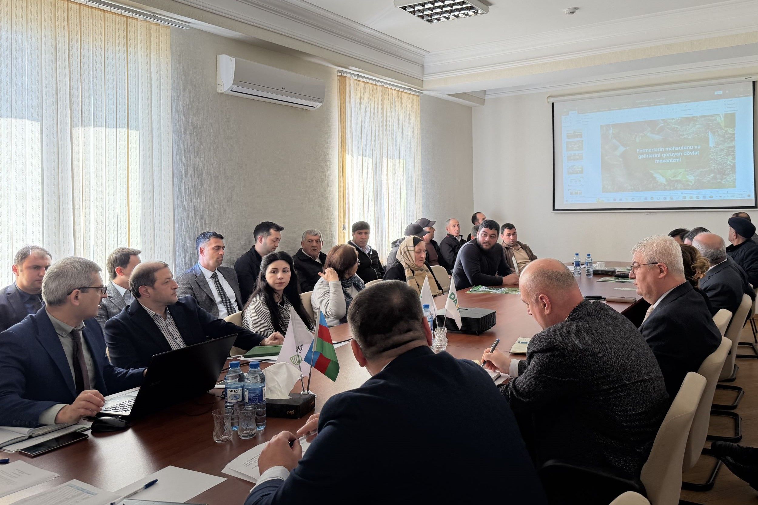 Daha sonra Aqrar Sığorta Fondunun məhsulları ilə bağlı geniş təqdimat edilib. Bildirilib ki, aqrar sığorta ilə 41 növ bitkini, eləcə də iri və xırda buynuzlu heyvanları sığortalamaq mümkündür. Görüşdə fermerlərin maraqlandıran suallar ətraflı cavablandırılıb.